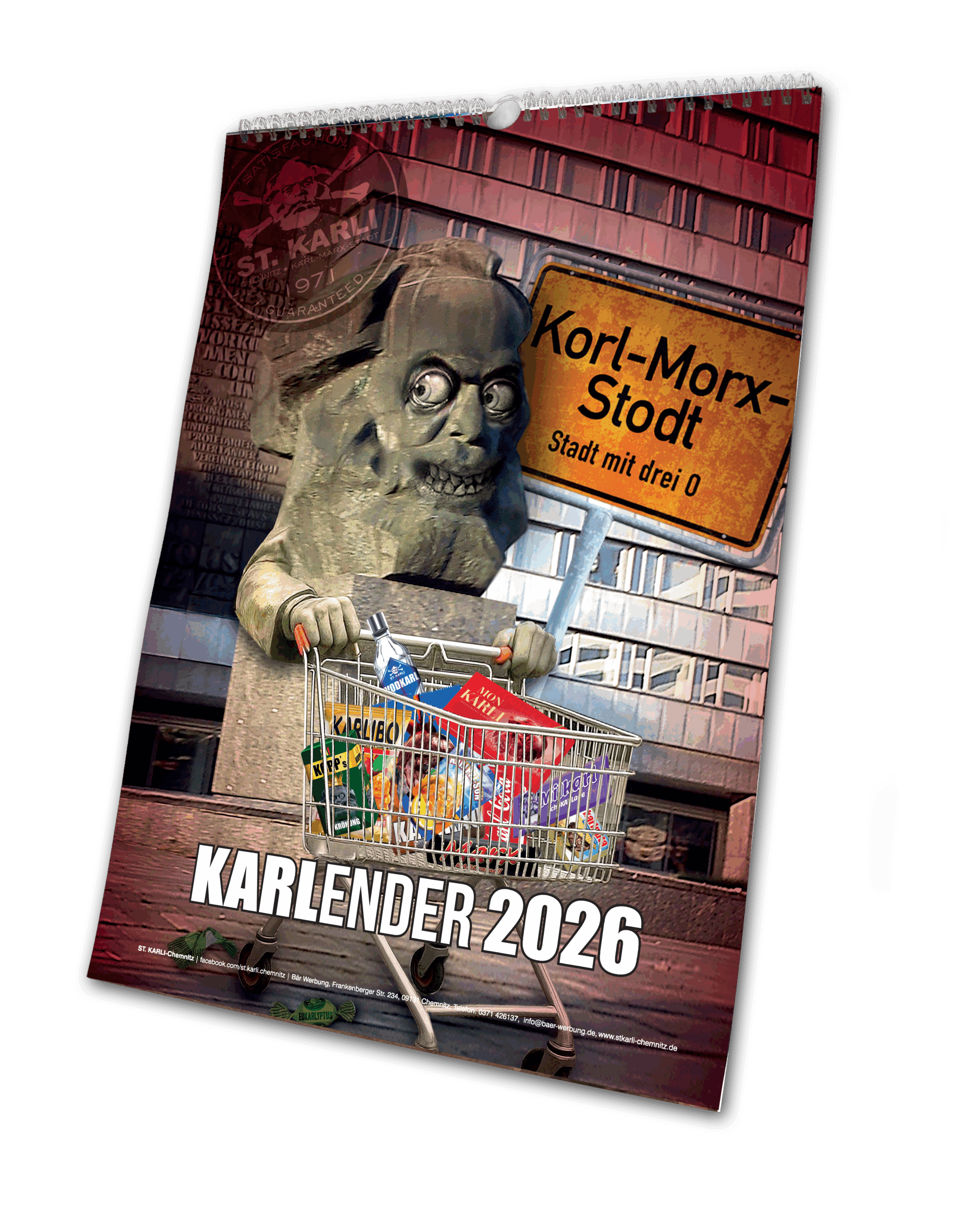 Der ST. KARLI-KARLender 2026 im Format DIN A3 begleitet euch das ganze Jahr über mit lustigen ST. KARLI Chemnitz-Motiven …